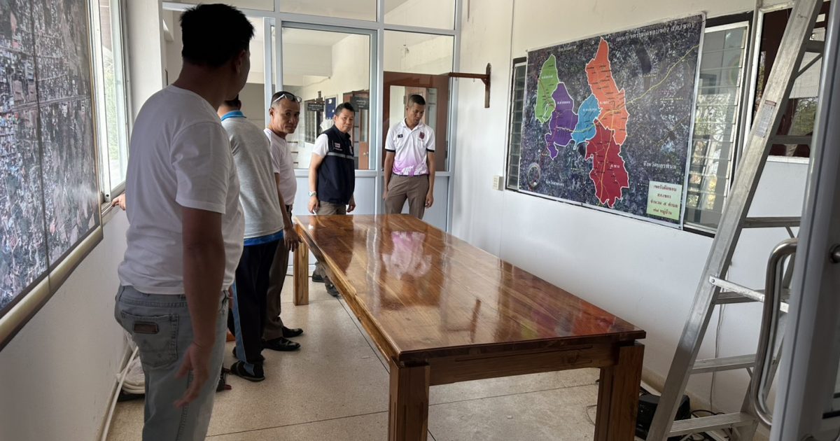 ควบคุมการสร้างเตรียมห้องประชุม ศปก.สภ.เซกา