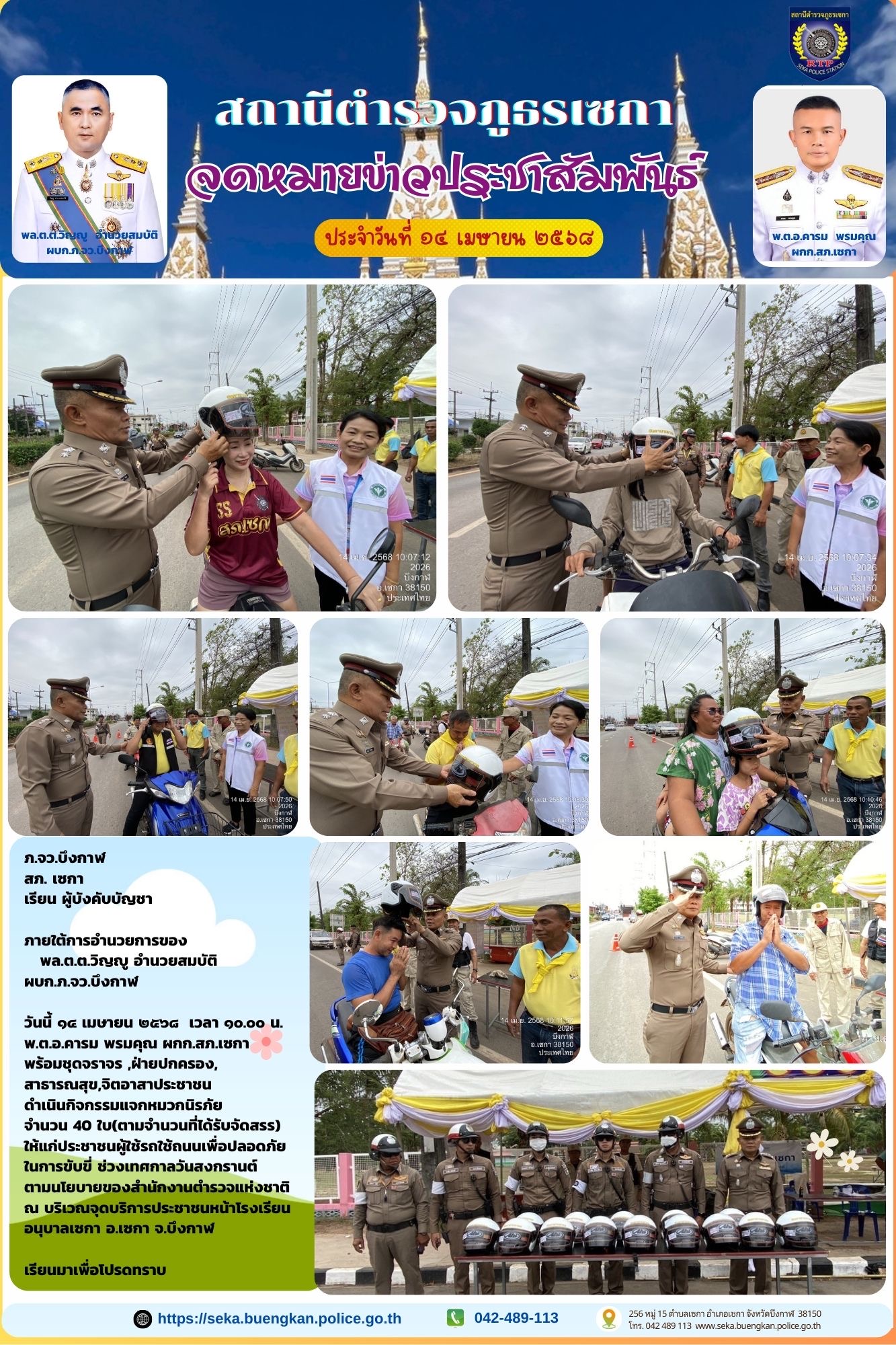 ผกก.สภ.เซกา แจกหมวกนิริภัยให้แก่ประชาชน ในช่วงเทศกาลสงกรานต์ 2568 14/04/2568 โดย Fuuryu / ข่าวภารกิจผู้บังคับบัญชา