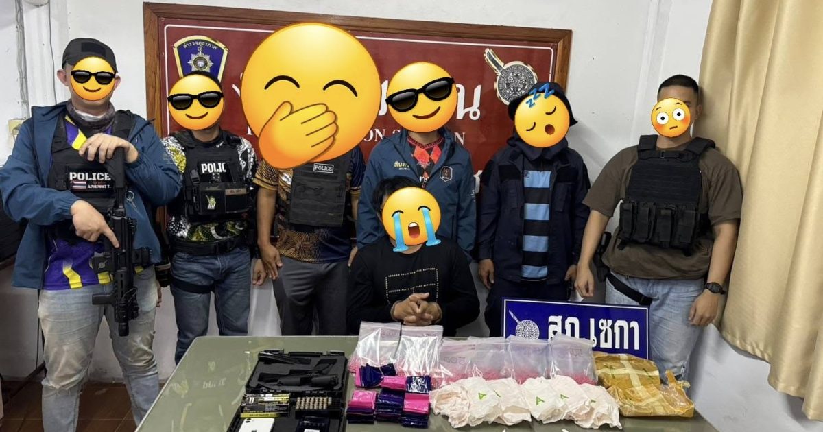 2.อาวุธปืนพกสั้น 1 กระบอก 3.เครื่องกระสุน ขนาด 9 มม. จำนวน 38 นัด