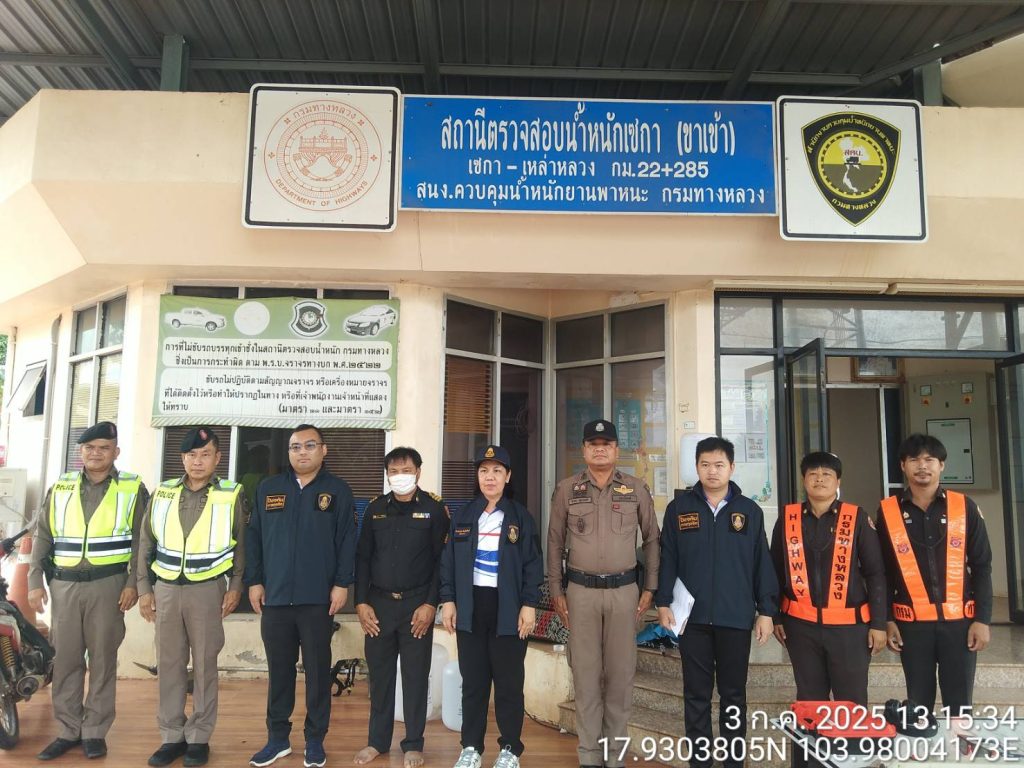 พ.ต.ต.จิรากร สุวรรณศรี สวป.(ชส.)สภ.เซกา ร่วมกับ เจ้าหน้าที่ ป.ป.ช.จังหวัดบึงกาฬ , เจ้าหน้าที่สถานนีตรวจสอบน้ำหนักเซกา,ตำรวจทางหลวง ลงพื้นที่เพื่อตรวจสอบ ติดตาม และสังเกตการณ์ การดำเนินการตามข้อเสนอแนะ เพื่อป้องกันการทุจริตเกี่ยวกับรถบรรทุกน้ำหนักเกิน ประจำปีงบประมาณ พ.ศ.๒๕๖๘ ณ สถานีตรวจสอบน้ำหนักเซกา