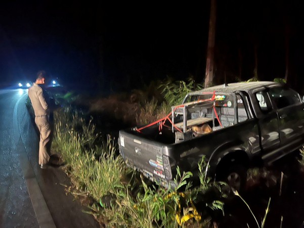 ร.ต.อ.ชาญชัย ภูล้นแก้ว รองสว.(สอบสวน) ร้อยเวร 30 ออกตรวจที่เกิดเหตุ อุบัติเหตุรถบนต์เสียหลัก วิ่งลงคลอง ไม่มีทรัพสินทางราชการเสียหาย
