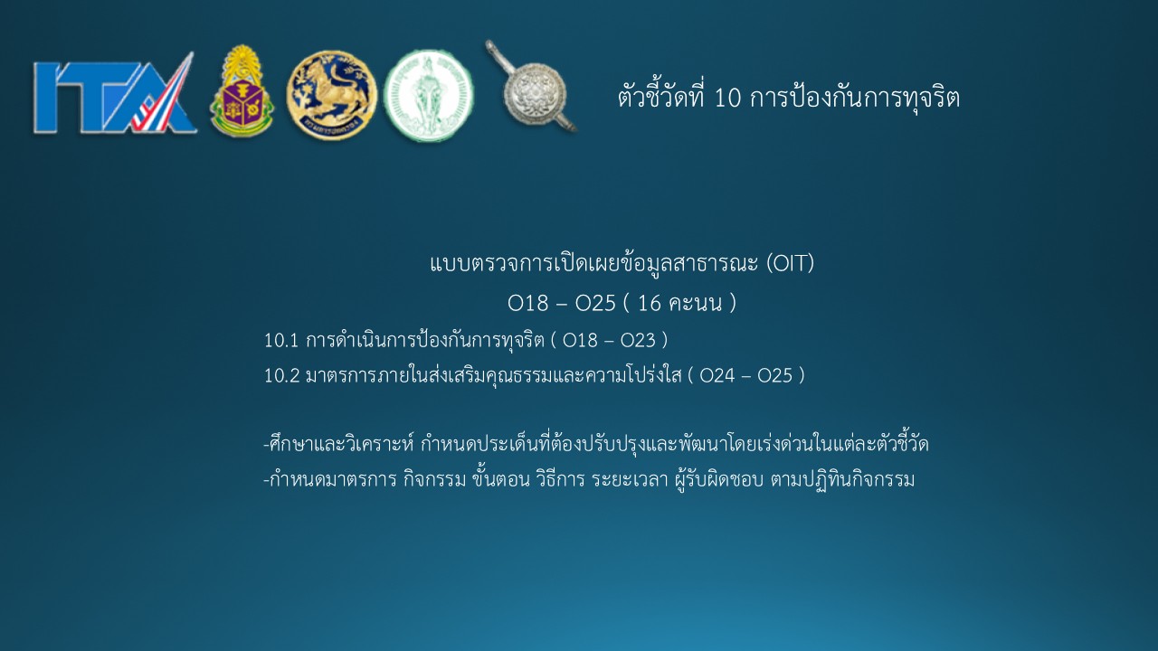 O25 รายงานผลการดำเนินการตามมาตรการการยกระดับคุณธรรมและความโปร่งใสภายในหน่วยงาน